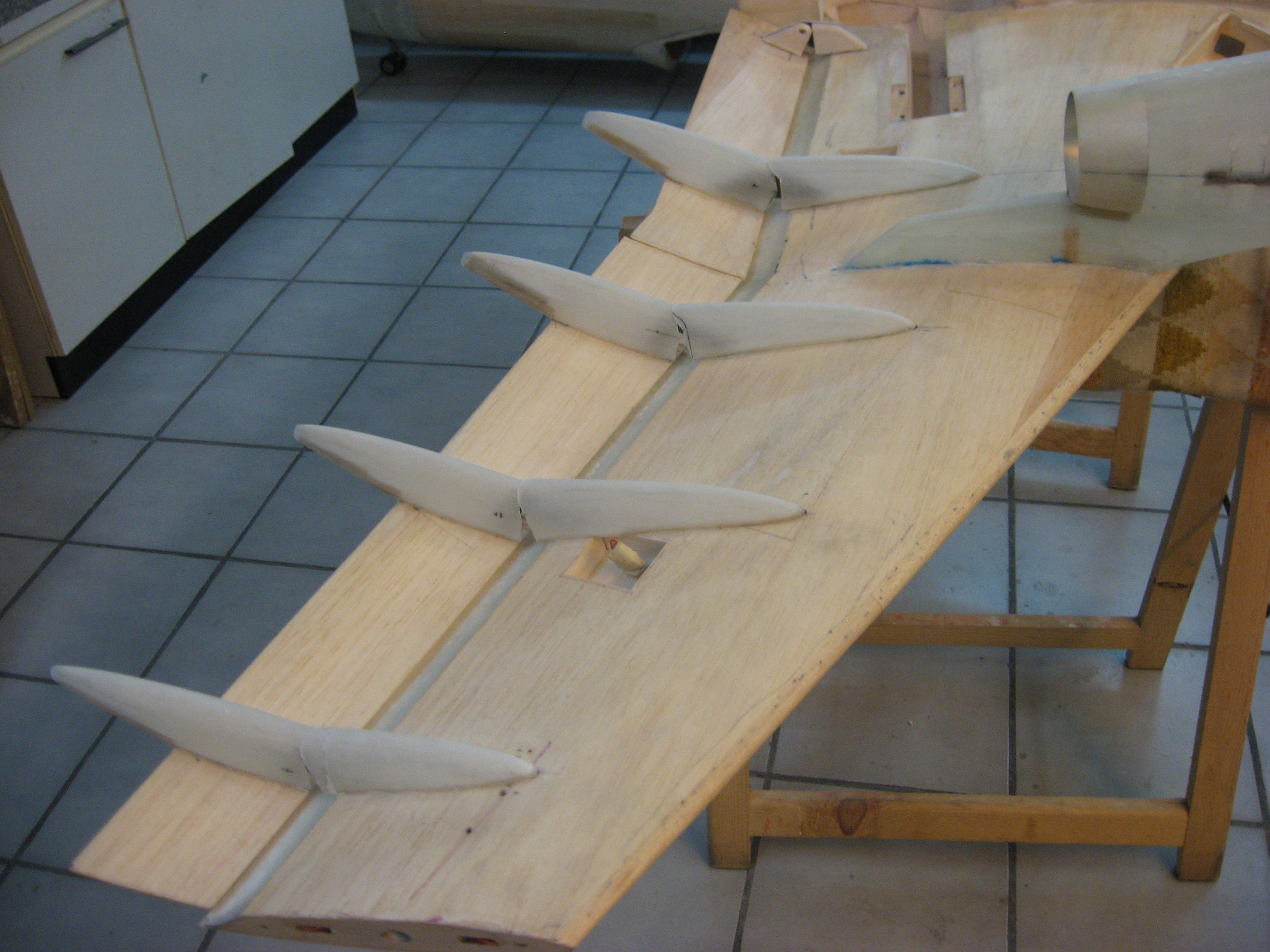 Balsa surfaces are being glassed